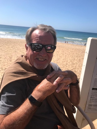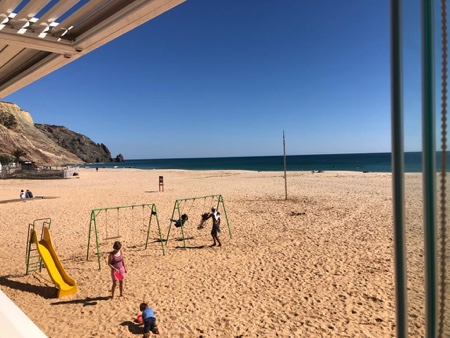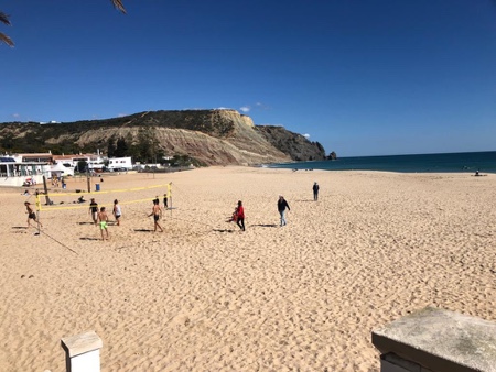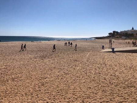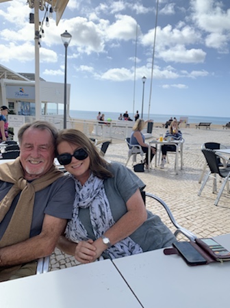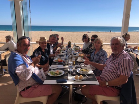 It’s a fabulous sunny day. 18c but a strong wind. We sit on the balcony enjoying the sun. David FaceTimes his children about their mum’s wedding the day before. Rita is busy washing and ironing. Today we are meeting friends for lunch so reluctantly I leave the sun and get ready for our trip down to Pria de Luz. We have been invited for pre ( late) lunch drinks at Izzy & Chris’s house on the way down into the village. When we arrive we are greeted by two large lively springer spaniels called Reggie & Ronnie. Two more guests arrive who are introduced as Geraldine & Stuart from Ireland. They too have just moved to Luz and are looking to buy a house and retire here. Izzy showed me around their garden and their huge property which has amazing views of the sea. They have started redesigning & modernising the house but still have a lot to do. After a livener we drive to the beach to our restaurant Paraiso da Luz. We have a fab table at the front in full sun. The large stunning beach is busy yet still allows plenty of room for everyone. After a leisurely lunch David drives us back to Ché Turnbull where Rita crashes and the three of us watch a few episodes of Bosch ( second time round) before we all give in to sleep.