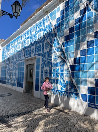 Saturday. 11c sun & cloud. A very leisurely start to the day. Rita drives us all to a little fishing village called Burgau five minutes drive from their house. It’s a typically charming unspoilt village. A steep windy drive down very narrow cobbled streets to the beach. The village relatively quiet until we reached the beach. The car park was full to the brim with various cars and beaten up camper vans. Many young people in various states of undress, changing into wet suites as this is a surfers paradise. We wander down the slope to a beach cafe for delicious coffee, watching the skill and dare of the surfers. The views are breathtaking. Later we continue on inland about 5 miles to Barão São João, Satrim a quirky little village again narrow windy streets. Rita finds a parking slot and we walk around and admire the flowery window boxes and painted walls. David spots a bar, by now the sun is over the yard arm so we share a bottle of wine, Roger has his usual beer. We get chatting to two portly Irish golfing guys who have had holiday homes in Lagos for many years. We remark after they leave on their motorised bikes that they are the most unlikely guys to be riding bikes~ good for them. We continue to Luz beach to our restaurant of the day, Davids favourite called Fabrica where we have a delicious lunch. After we return home to chillax even more. DT lights the fire and we settle down to watch the Rugby. England v Wales which turned out to be a nail biting game with a great result for England. Later we watch a few more episodes of Bosch. It’s even better the second time round. Bed around 10 pm