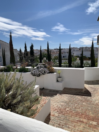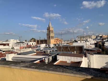 Breakfast in Luz. Judy’s last dayCrossing into Spain from PortugalView from our rooftop in SevilleJoe with Ché