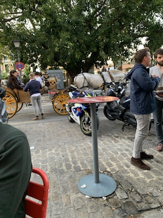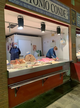 Next morning we decide to explore the other part of the city so walk along the riverside and cross the bridge towards the cathedral. We have all been to Seville before, the last time being with Norwich Inns (our pub buying group) in 2014. Another memorable trip. We find a coffee shop and partake of ham rolls or toasted sandwiches with fresh orange juice and fabulous cafè con leche. We wander on and Rita spots a famacia so we both get some meds – me for my cold and Rita for her allergies. We book the hop on hop off bus and as we are waiting for the next bus David feels he need the loo badly. He is no longer interested in the bus tour so wanders off on his own to explore the loos of Seville leaving the three of us to take the bus tour. After a while we pass through a very atractive large square in Alameda area so we decide to hop off and find somewhere to meet up with DT. We choose a rather traditional looking place called the Maestro Rufino in full sun, with a spot of shade for Roger and order some white wine. The young portly waiter is very friendly even telling us he is hung over with a dicky tummy ( not sure we are happy to be served by him) but cheerfully manages to upsell a bottle of wine to a magnum, suckers that we are. We text DT our location unawares of the distance he has to walk to find us. We are peckish by now so order some tapas which are amazing. We have smoked salmon and advocado on orange biscuits, tuna loin with juicy tomato, tomato salad, potato salad and braised oxtail of those that I remember. We watch out for DT and wonder how long he will be. Eventually he turns up having done 16000 step to find us, it was way further than we thought. He arrives a bit hot and bothered poor boy with quite a lot of wine to catch up on. We hear of his escapade’s including having the set of keys that didn’t work so couldn’t get into the apartment. He found a little bar on route to relieve himself luckily. As he soon resumes usual cheerful self he soon perks up but is not hungry so we have another magnum of wine and put the world to rights. After several hours sitting in the sun enjoying life we decide to make a move and stroll around the streets of this area admiring the architecture. We are way off route so decide to take an Uber back to our local area. DT is still not 100% and my cold is raging so we head home for an early night. Around 9pm.