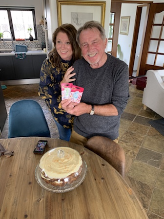 It’s a bright start to the day but cold and windy. 11c. DT has risen early and walks into the village to pick up his car, on to physio then picks up the usual fresh bread rolls for breakfast. Today the Turnbulls have invited friends for lunch. We leave Rita to prep for lunch which she insists is easy and doesn’t need help with. We retire to our quarters to shower and change. I do a bit of admin and write up my blog for the previous day. Roger reads up on a Portugal travel book looking for our next trip I guess. A memory pops up on my Facebook page taken eight years ago when we visited James & Leslie in New York. It’s was a very cold evening and Roger is dressed in his NCFC hat & scarf with our young grandson on his shoulders. A flash & eight years later our handsome almost 13 years old grandson is now taller than both of us. At 1 pm guests arrive. Two lovely gay husbands called Steve & Paul and an Irish lady Barbara accompanied by Billy her fluffy white dog with avery loud sharp yap. The boys brought their adorable cocker spaniel called Archie. Rita served a delicious lunch of Chicken Caesar, mozzarella, basil & tomato & a warm bean salad with baby new potatoes. All my favourites. Afterwards we had homemade birthday cake. The wine was flowing and the conversation extremely varied. One of the boys had been a ladyboy bar owner in Thailand and a hairdresser to the stars including many famous people including Danny La Ru & now owns many properties in Jersey. His partner Paul an amputee I found very interesting. We talked about his life changing operation and other health issues. He was a very bright techie a subject close to my heart. Paul went on to set up DT’s Tv system for him and after they all left we settled in for a quiet few hours on the sofa in front of the blazing fire. We watched a black & White classic ‘ Witness for the prosecution’ a 1956 film with Marlene Dietrich & Tyrone Power.