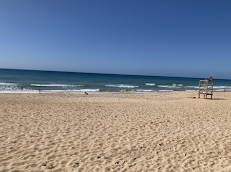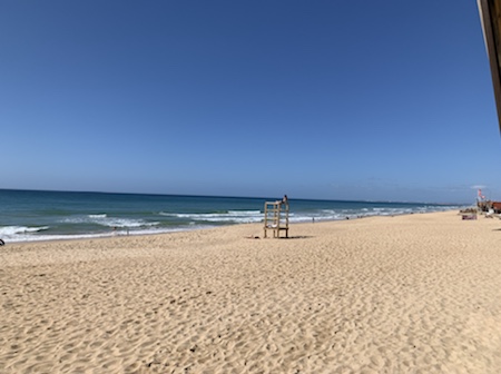 I was up very early worried about our only clean undies left outside all night after we had heavy rain! Dried them on the room heater while I finish packing which seems much easier than the rush before we came out. I strip the bed and put a load of washing in Rita’s machine. I am impressed by the short cycle and everything comes out brilliant white. I must check the instructions on my machine when I get home. We pack the luggage in the Turnbull’s car and head off into Luz for yummie bacon & egg baps, healthy orange juice and delicious coffee. It’s beautiful & sunny so we sit outside again. The beach looks wonderful and is the perfect place to take a long look before heading to the airport. Rita drives and as we are early we decide to drive to Praia do Faro for a last drink. The beach is fabulous. We sit in a busy little bar right on the beach. Back at the airport still more time to have a glass of wine with the Turnbull’s in the sun outside the airport before checking in. We hug and say goodbye. We have been made so welcome and are so relaxed ready to hit anything that comes along again! Check in was very smooth and quickly we are through to air side. This is our fourth trip out of the U.K. since last October and it’s definitely getting much easier and feels safe. Roger purchases some spirits to stock our home bar and I pick up a few bits of cosmetics not available in duty free on the way out. The Ryanair flight is smooth and we land early at 18.30. Masks are worn everywhere inside shops and bars in Portugal and Spain, at the airport and on the aircraft. However after we land in the U.K. we notice that in the queue for immigration only 50% of people are wearing masks. A dramatic change as soon as we land! There is quite a queue for immigration but it moves quickly and we are soon collecting our one checked on case. We are out of the airport and on our way down to the train. I had booked an open ticket hoping for the direct train to Norwich. However the 19.15 had been cancelled and we were told we would need to catch the Birmingham train and change at Cambridge this was due at 20.21 so a real disappointment. We have a large Costa coffee and relax in the waiting room. We catch the said train tired and ready for bed. In Cambridge we get off the train and change platforms. The Norwich train is ready in the station so we make ourselves comfortable with our luggage and heavy duty free purchases of booze and confectionery. Half way to Norwich I realise we have left the cabin bag on the Birmingham train. There is absolutely nothing we can do and I am just praying the dirty smalls are not in that case! I ring Birmingham but the lost property is closed until 9 am in the morning. We arrive at Norwich and taxi home. Piles of Roger’s birthday cards greet us on the door mat. The house is freezing so we turn up the heat make a cuppa and find our warmest PJ’s, jump into bed for a warming cuddle. Reflecting on the two weeks we have enjoyed the company and warmth of our hosts at their beautiful new home. Thank you Rita & David 😘